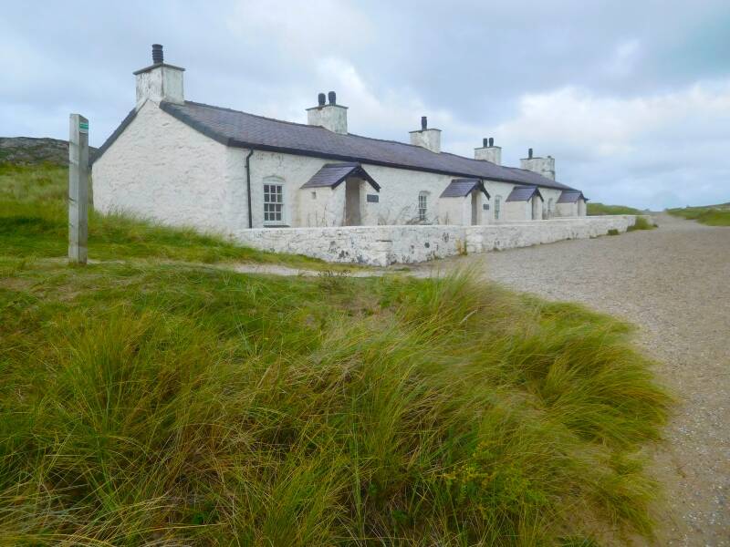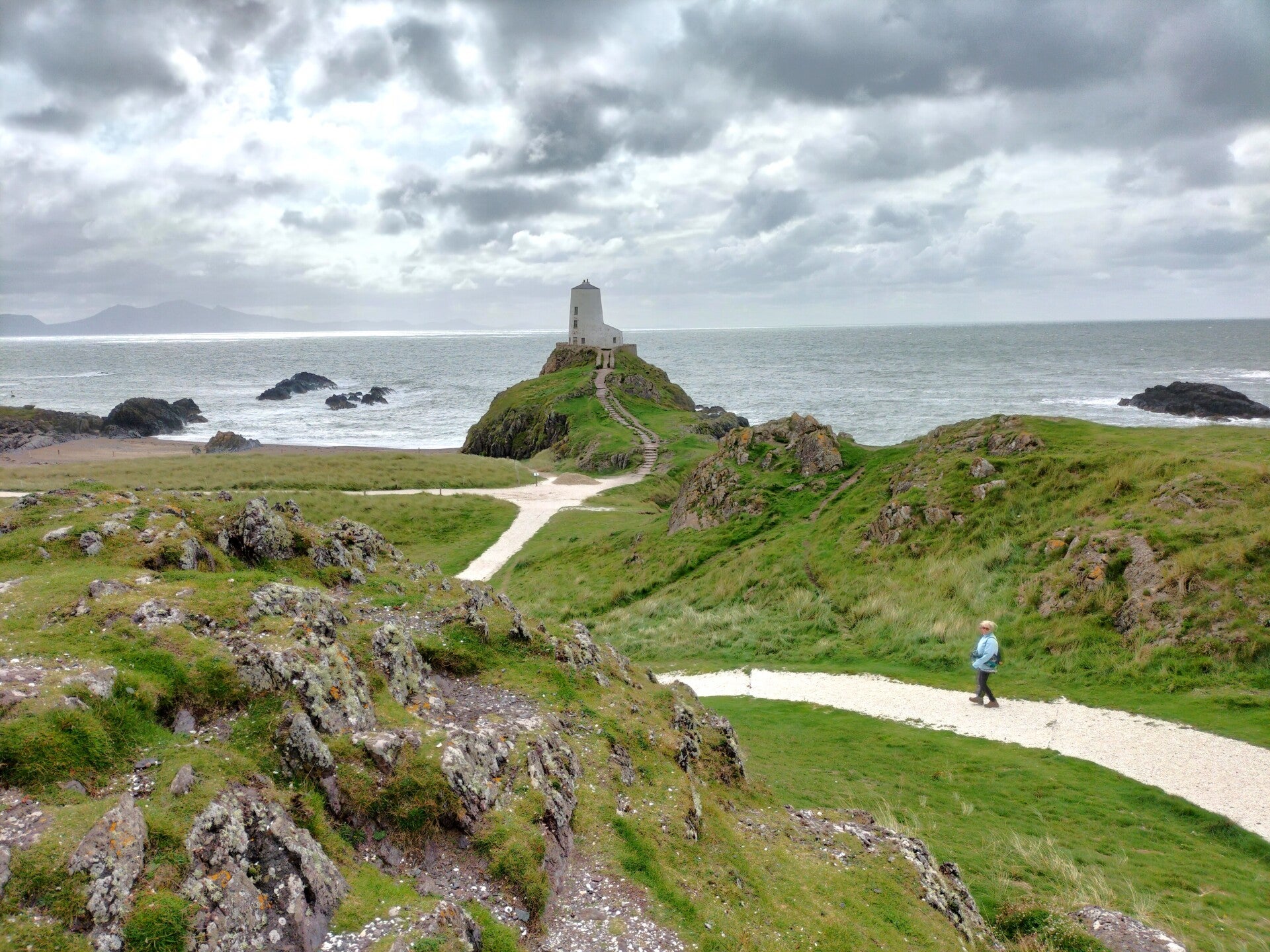Een iets wat langere wandeling, circa 2 uur v.v, gaat naar een schiereiland op dit schiereiland: Llanddwyn. Vanaf en over het strand naar een vuurtoren, Goleudy Twr Mawr, die wel heel mooi gesitueerd is. Daarnaast ook nog enkele oude pilotenhuisjes en resten van een kapel.
