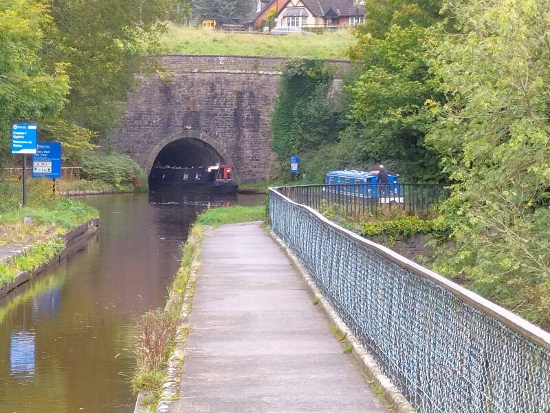 We hebben al vaker aquaducten gezien maar nog niet een waar water stroomt. Sterker nog, er varen bootjes, de zogenaamde canalboats of longboats. Bovendien is dit een dubbel aquaduct want ernaast ligt een nog hoger exemplaar waar vroeger de trein over reed. Dit maakt deel uit van het Llangollen canal dat door een 400 meter lang en donkere tunnel voert en dan verder naar Pontcysylte aquaduct nabij Llangollen.
